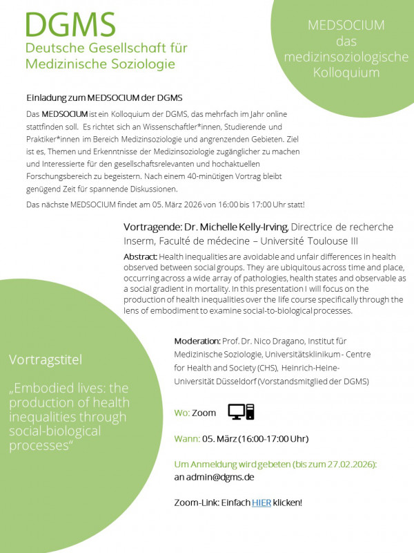 Das nächste MEDSOCIUM findet am 05. März 2026 via Zoom statt! Hier geht es zum entsprechenden Zoomlink.